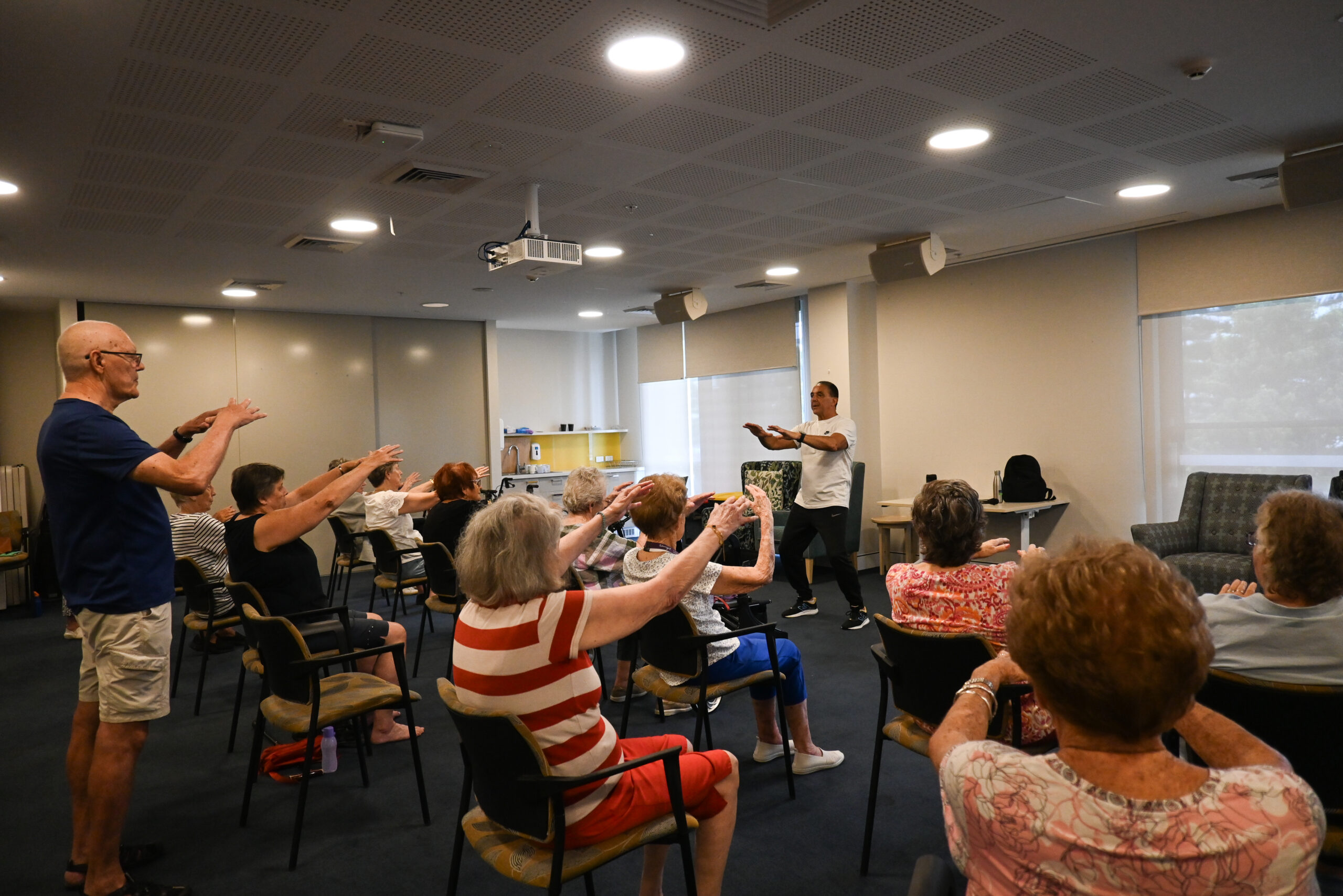 In unseren Kursen in Warrigal kann das Programm sowohl im Sitzen als auch im Stehen durchgeführt werden und ist somit für Teilnehmer mit unterschiedlichen Mobilitätsniveaus geeignet. Dank der entspannenden Atmosphäre und der beruhigenden Musik, die unser Trainer Doug schafft, sind die Kurse bei den Teilnehmern sehr beliebt.